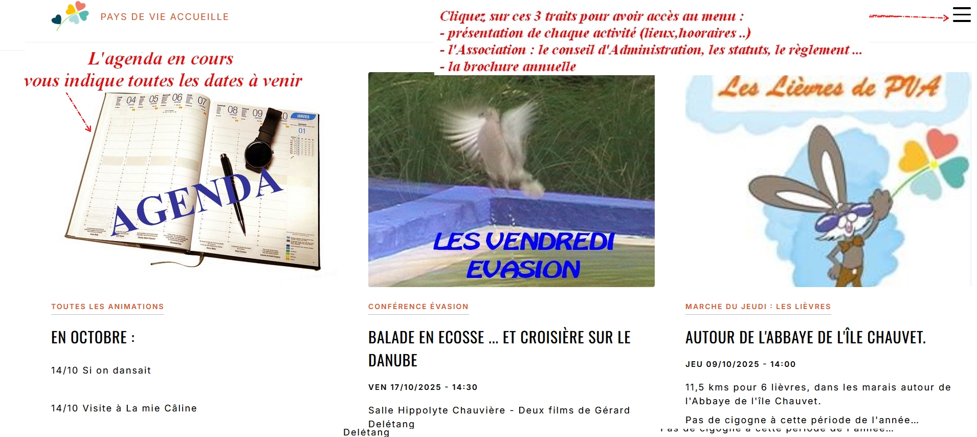 - La brochure annuelle, la liste des élus au Conseil d'Administration et les partenaires sont en bas de la page "Association".